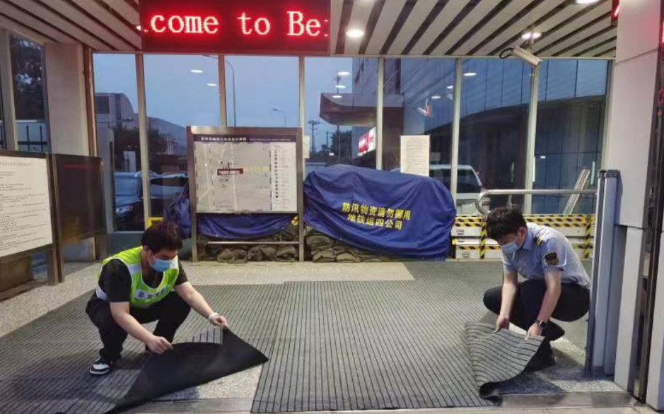 对于地势低洼车站以及重点防汛场段安排人员现场值守;对于重点车站出入口提前预制安装挡水板,运营结束后安排全部车站安装挡水板,提前做好防范措施;首班车前,提前安排轧道车上线运行,安排专业技术人员对线路运营准备情况进行检查;充分利用北京地铁气象监测平台对降雨、风力、能见度情况进行监测并及时采取响应措施。