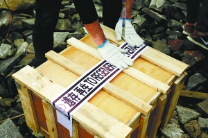 拣寻的古砖被放入木箱内贴上封条