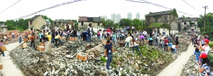应天齐:已经完成的芜湖市民拣砖活动是前期的重要环节,这些砖将用于古城即将启动的建设,铺成一个古砖广场,地面甚至开几个天窗,我们能够看到这个是由多少层砖头铺的,就像岩层一样。更主要的是,开了天窗以后底下可以放一些我们古城的零部件,很多地方都有遗址的那种感觉。这一块地方将来我们的后代是不会动它的,因为它是惟一剩下的我们这个时代的一些文物了,它是一个大文物的概念。这虽然是一个很前卫、很现代的做法,但这是一个最传统的保护的做法。