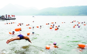上周六,作为“四季金海湖,健康养生游”嘉年华系列活动之一的“2014横渡金海湖全民挑战赛”在平谷区4A级景区金海湖举办,共吸引了全国各地300名游泳爱好者参与。