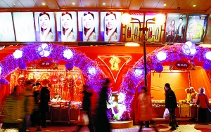在崇文门新世界门前近百米的民俗街上,汇集了数十个摊位。消费者除了可以买到年画、福字等年货,更可以在现场欣赏到吹糖人、剪纸等北京民俗文化传统工艺。另外,更有百思图、波司登等知名商品进行促销。北京商报记者 张笑嫣/文并摄